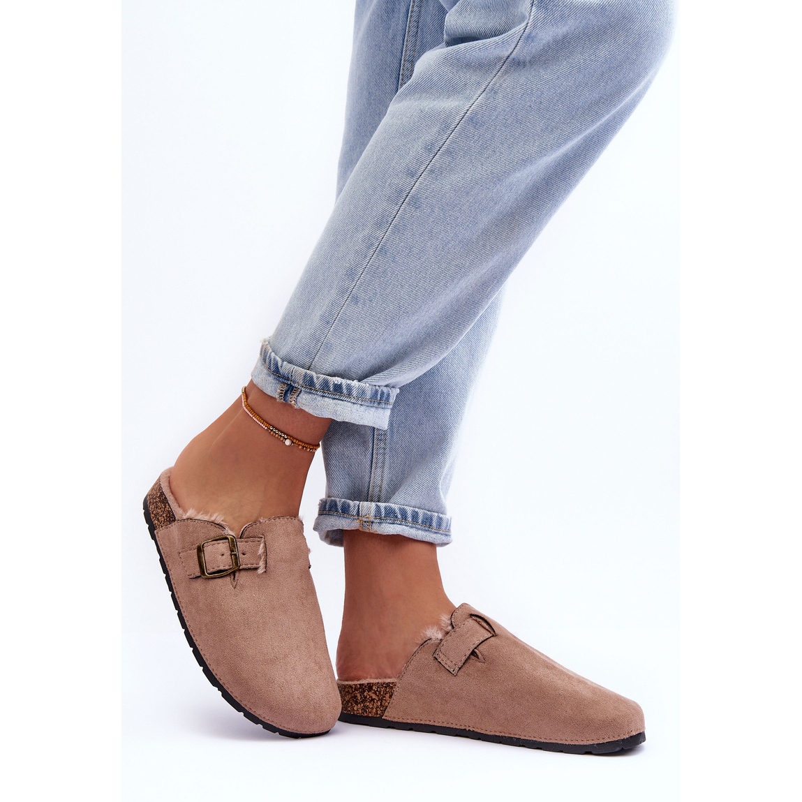 Inna marka Chinelos femininos bege de camurça com pele Haidamia