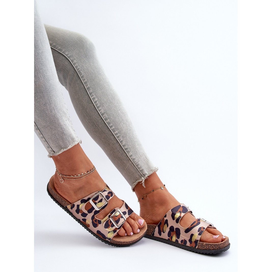 Detalhes: Chinelos femininos bege e marrom com fivelas Oliena