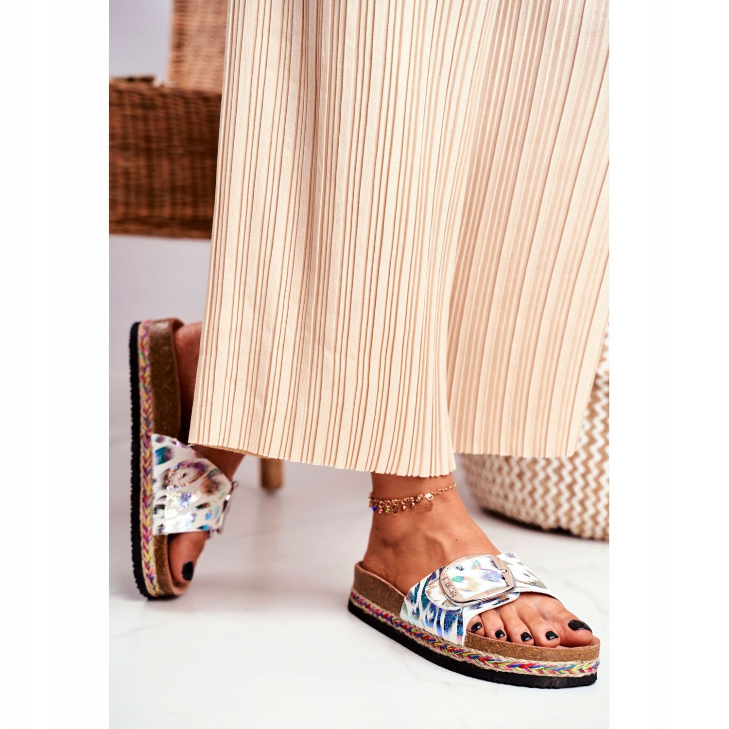 Big Star Chinelos femininos Big Star Metallic Pattern DD274127 branco