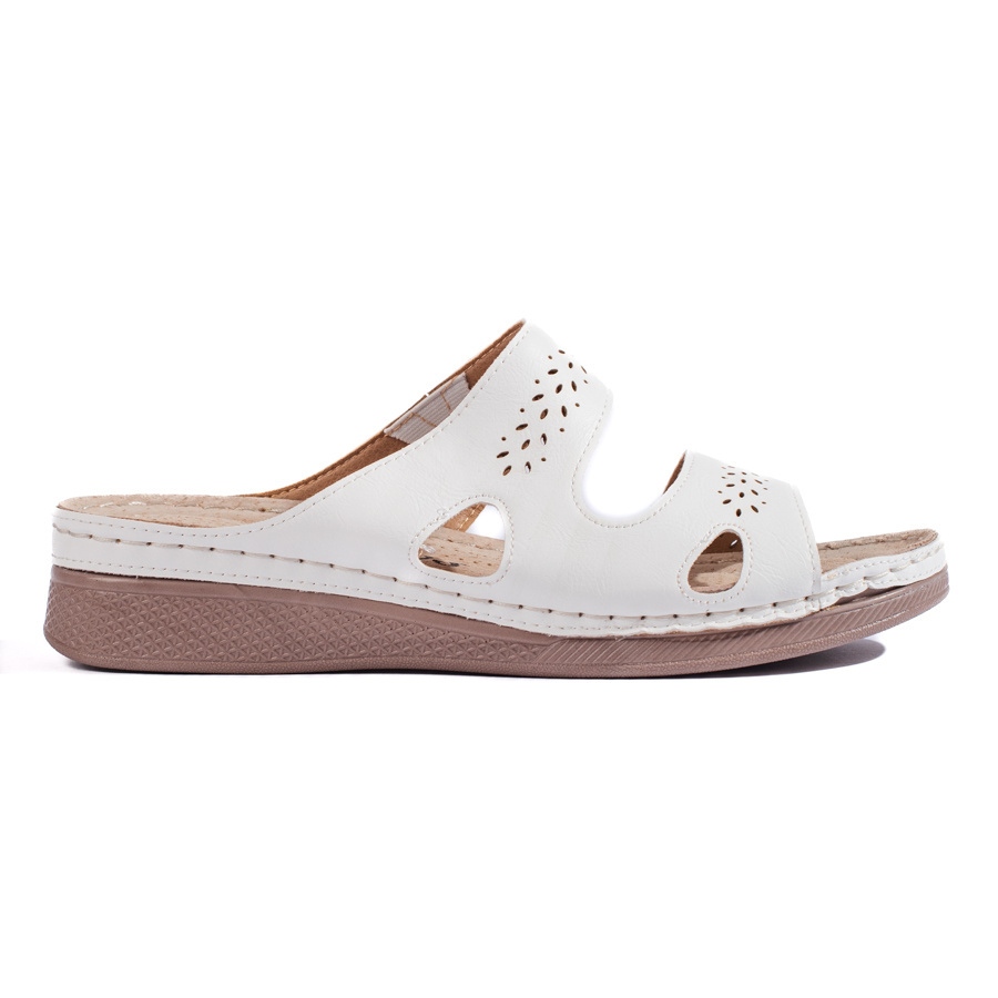 Feito de couro orgânico de alta qualidade, esses chinelos não são apenas ecológicos, mas também extremamente confortáveis. A imitação da pele interna e externa se adapta bem ao pé, garantindo conforto durante cada etapa. O salto aberto e os recortes de trabalho aberto dão a eles leveza e frescura, o que os torna uma ótima opção para os dias de verão.
