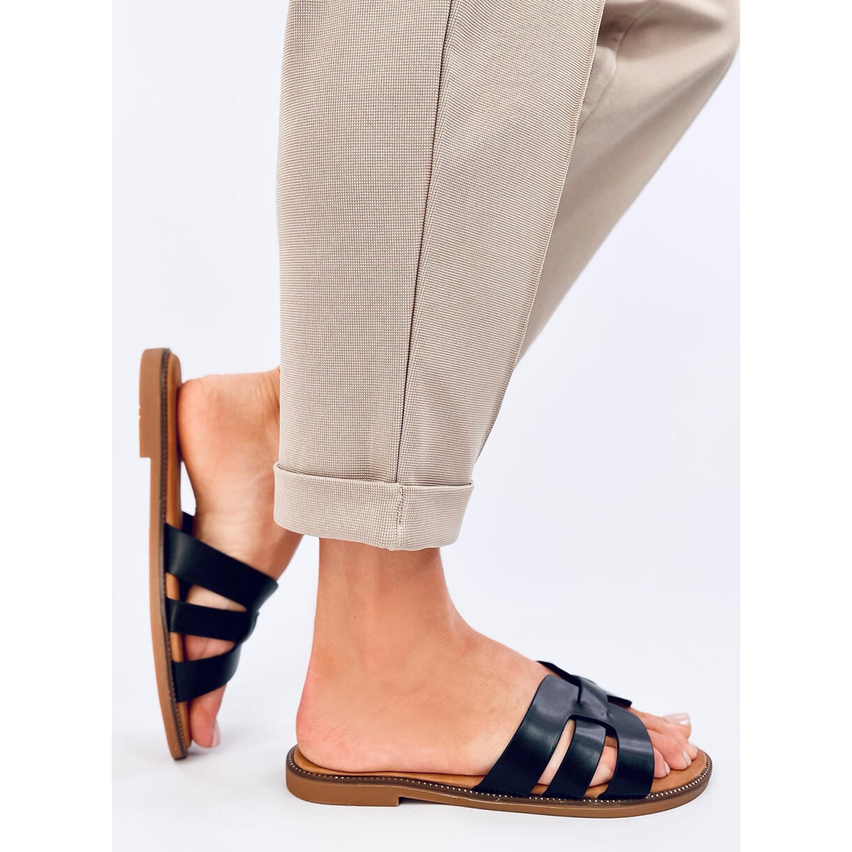 Descubra conforto e estilo nos chinelos femininos Charnes Black. Estes elegantes chinelos pretos com sola plana combinam praticidade com design moderno, perfeitos para os passeios do dia a dia. Fabricados em couro ecológico de alta qualidade, garantem durabilidade e conforto de uso. A inserção interna macia torna cada passo um puro prazer.