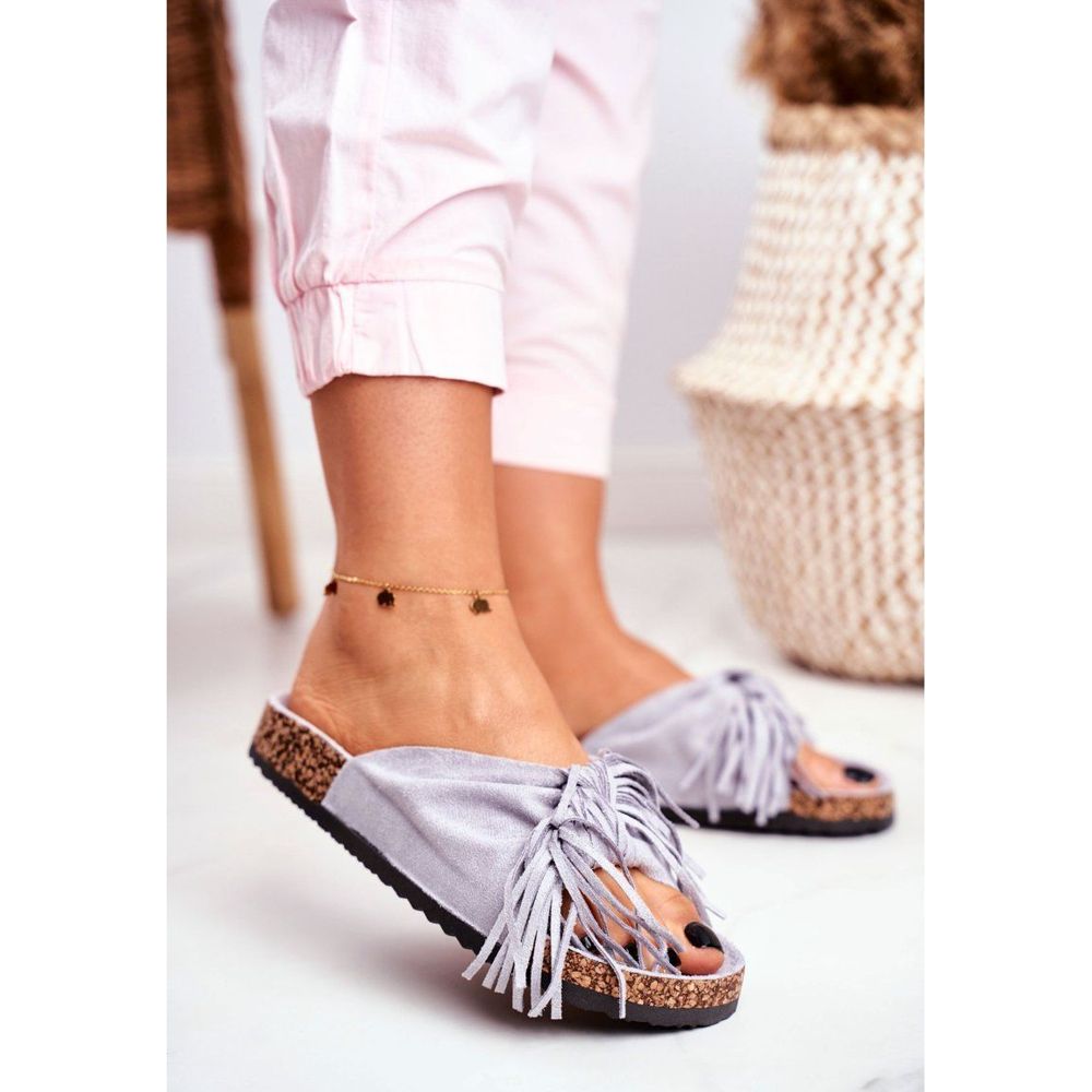 BUGO BUGO Chinelos femininos cinza em cortiça franja marina