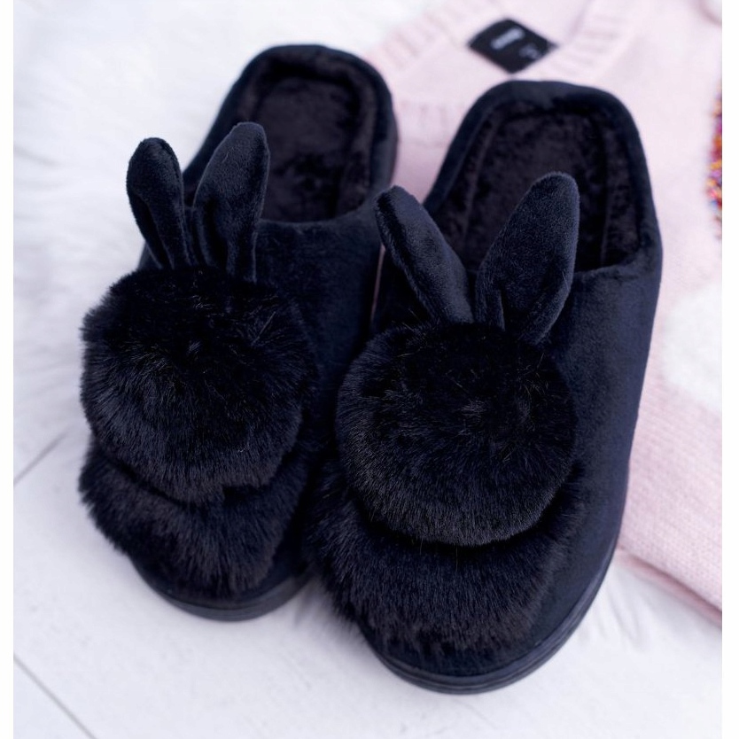 Detalhes: Chinelos femininos clássicos com coelho preto Howi