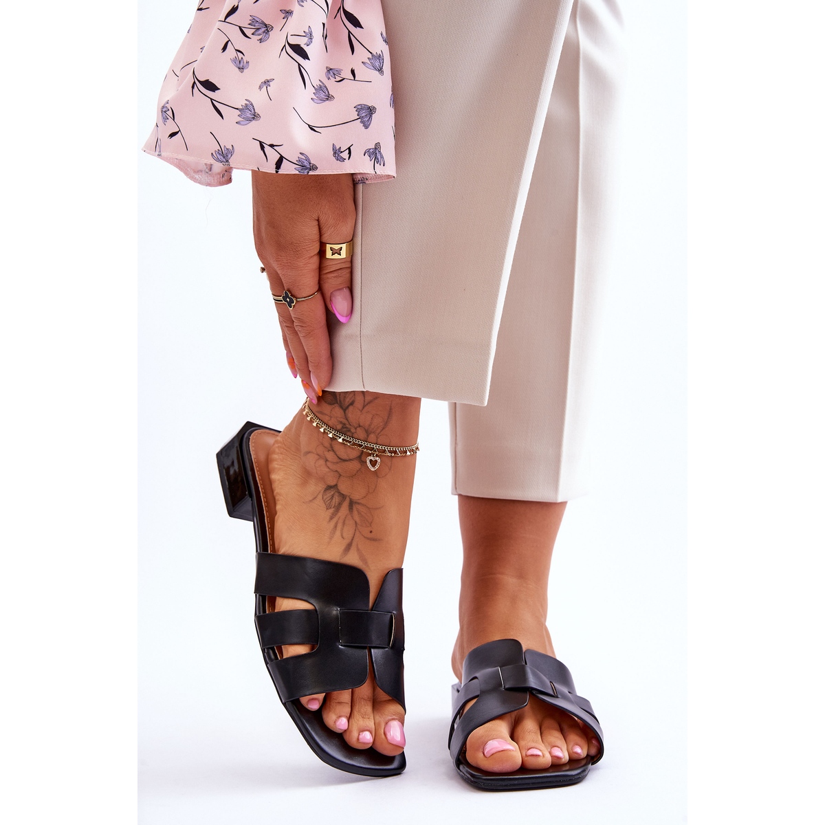 A cor preta simples e elegante torna os chinelos FJ1 muito universais e podem ser combinados com muitos estilos diferentes - desde roupas simples do dia a dia, passando por conjuntos de trabalho, até looks mais sofisticados para passeios noturnos. A ausência de padrões ou decorações desnecessárias é garantia de classe e atemporalidade.