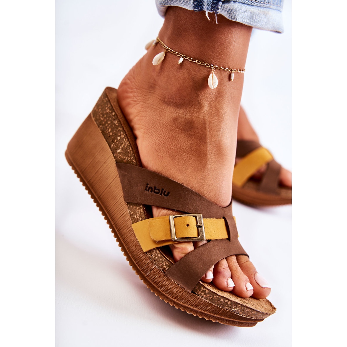 Detalhes: Chinelos femininos com cunha Inblu EN000024 Marrom-Amarelo castanho