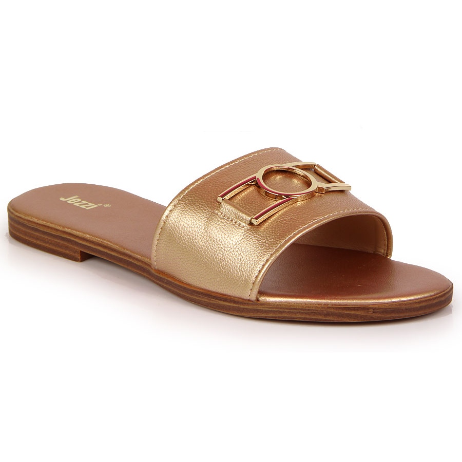 Jezzi Chinelos femininos com decoração Jezzi dourada dourado