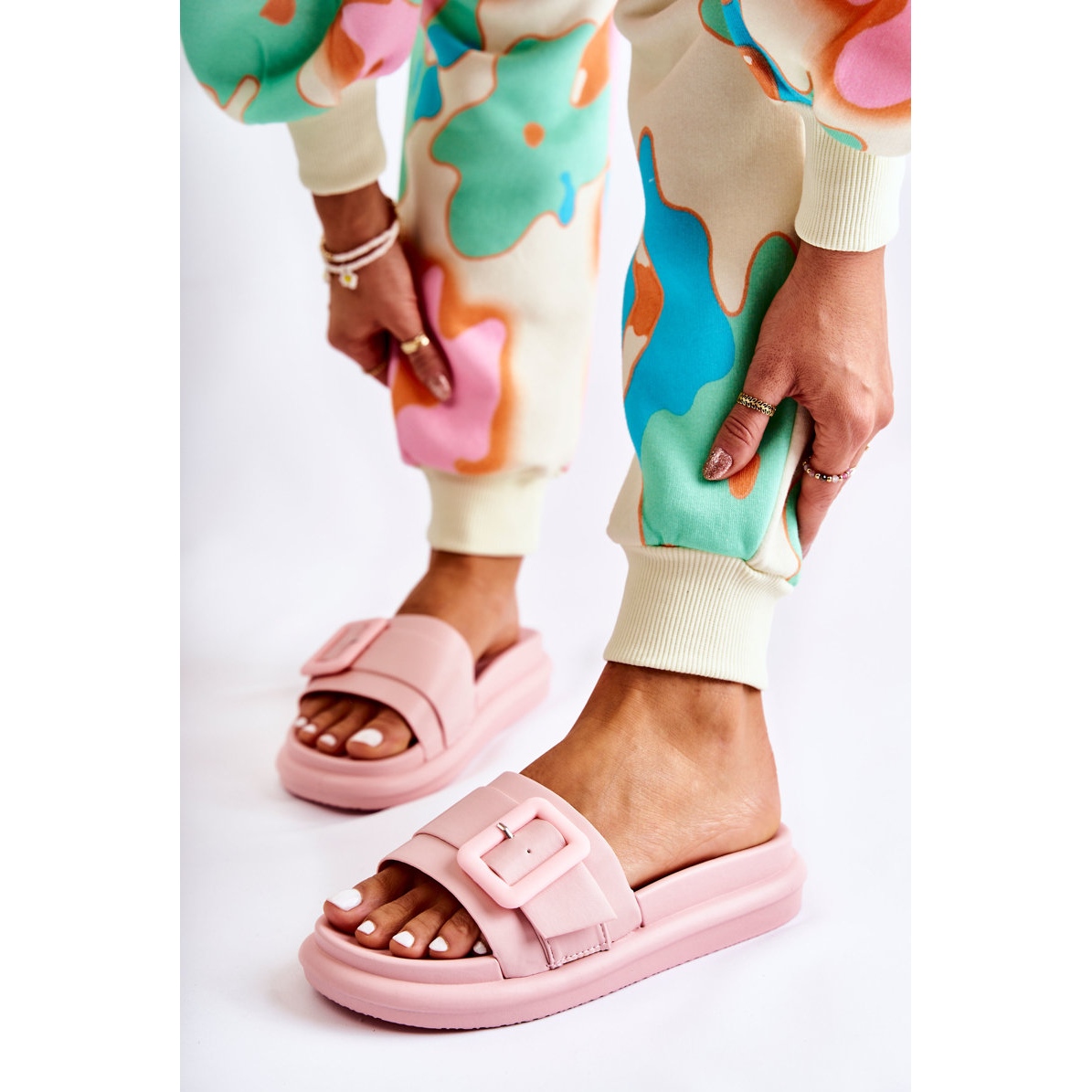 Detalhes: Chinelos femininos com fivela rosa Devia
