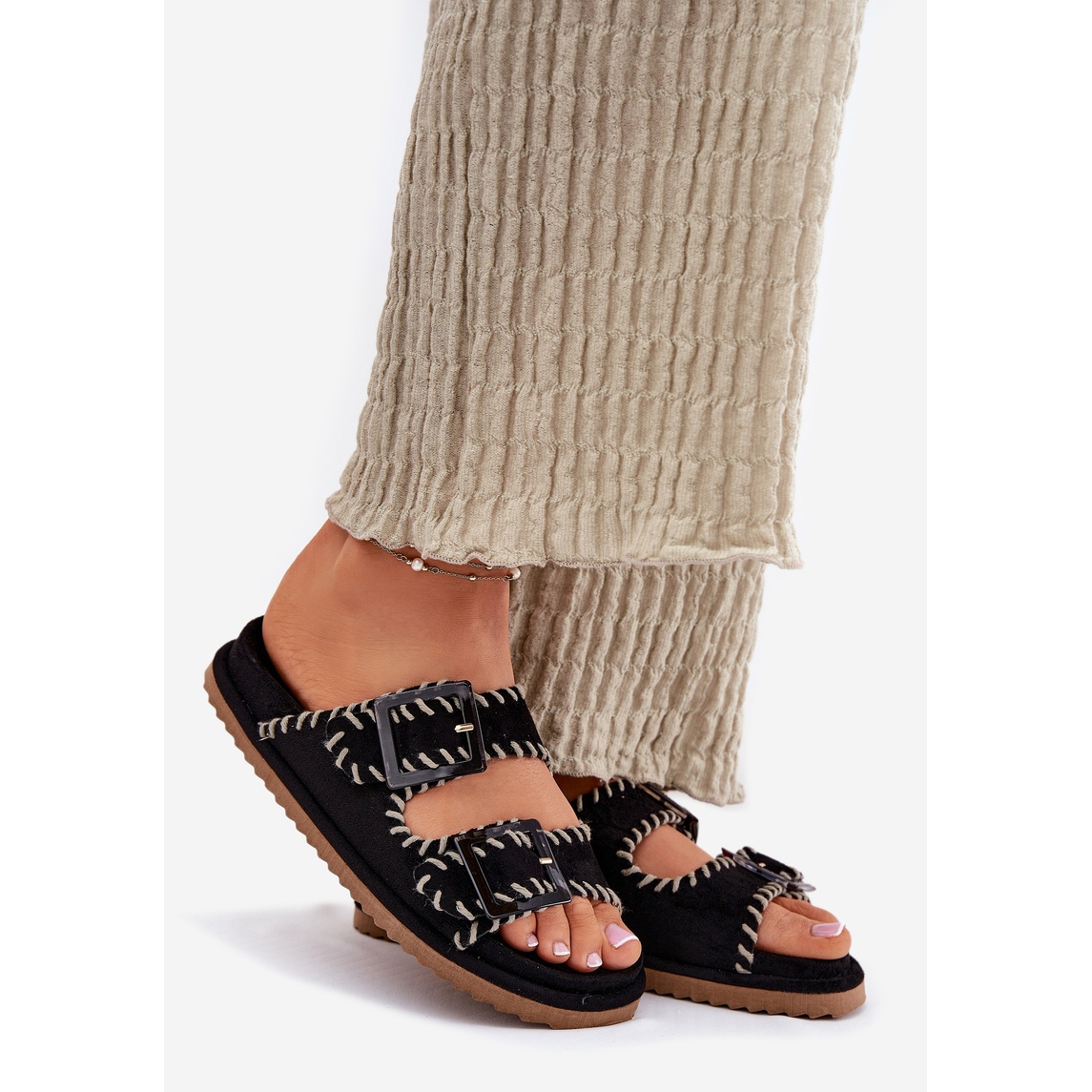 Detalhes: Inna Chinelos femininos com fivelas e bombardeio preto decorativo