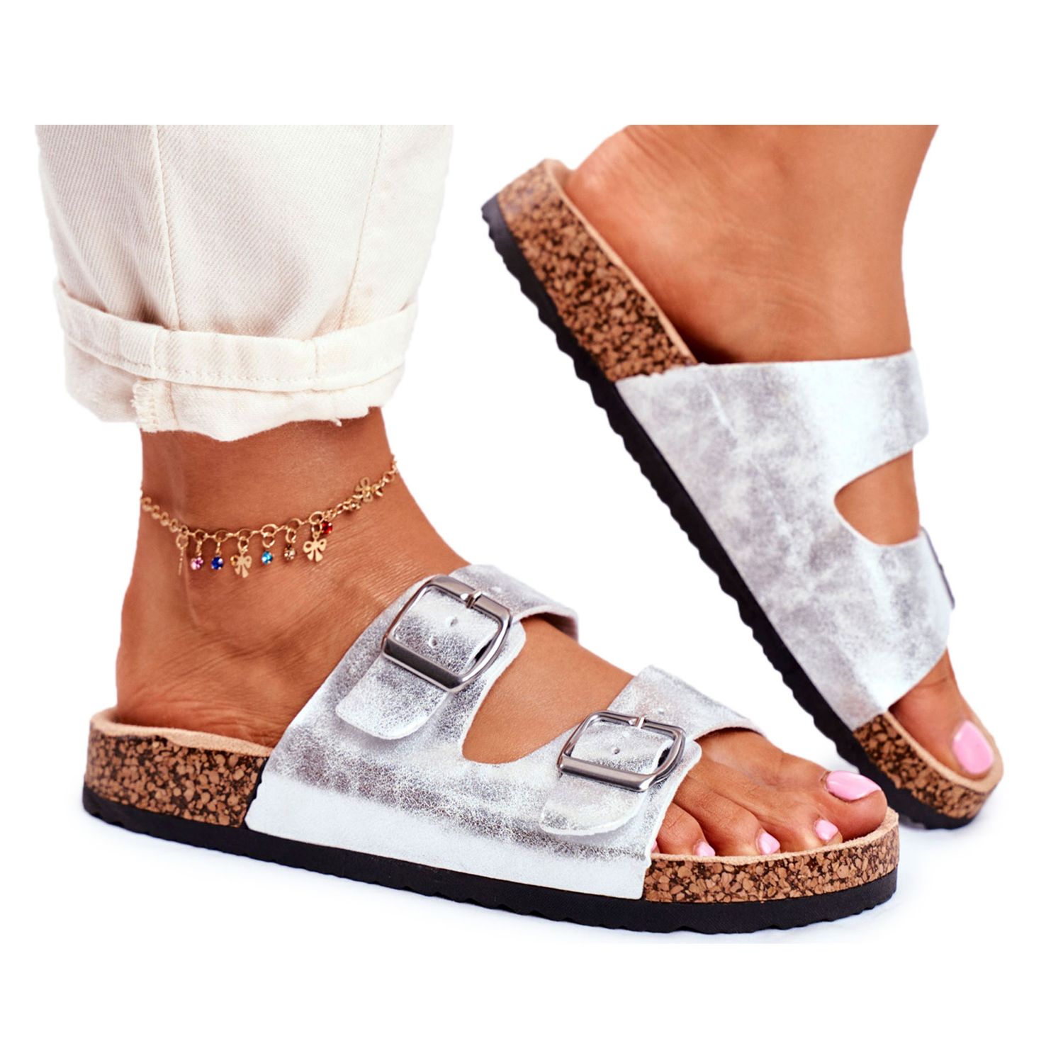 Detalhes: EVE Chinelos femininos com fivelas prata vivio cinza