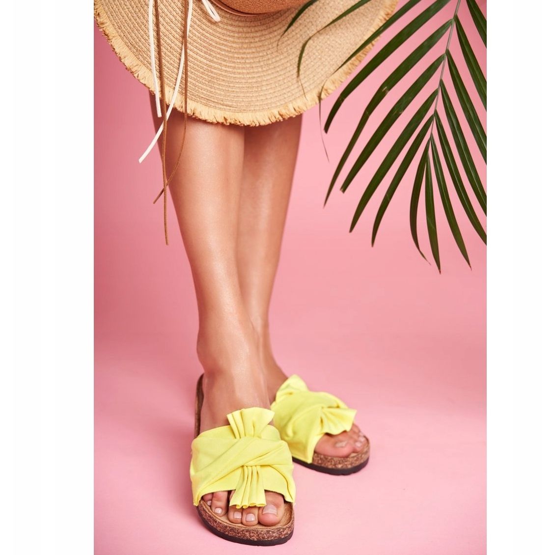 Detalhes: PS1 Chinelos femininos com laços de cortiça laço amarelo néon