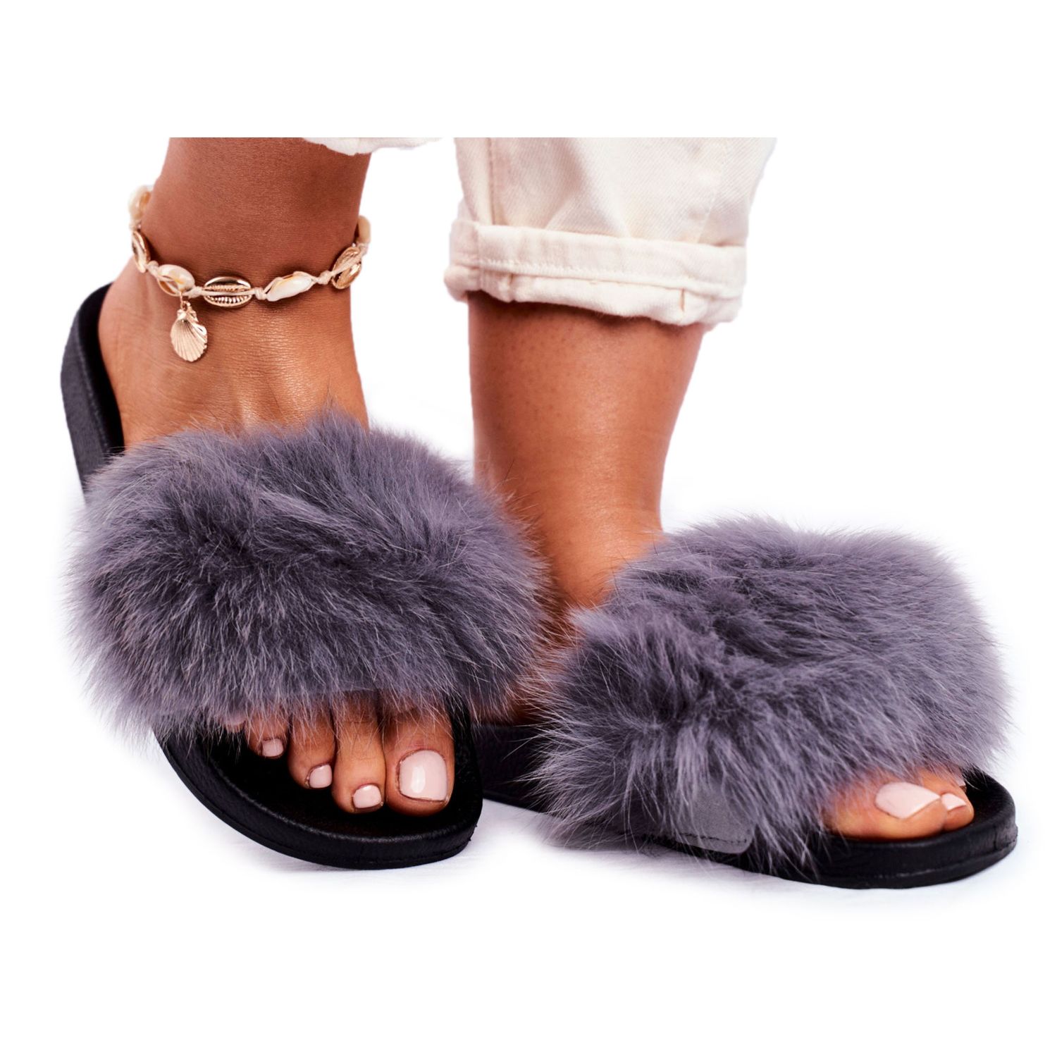 Detalhes: PS1 Chinelos femininos com pele cinza Belmondo