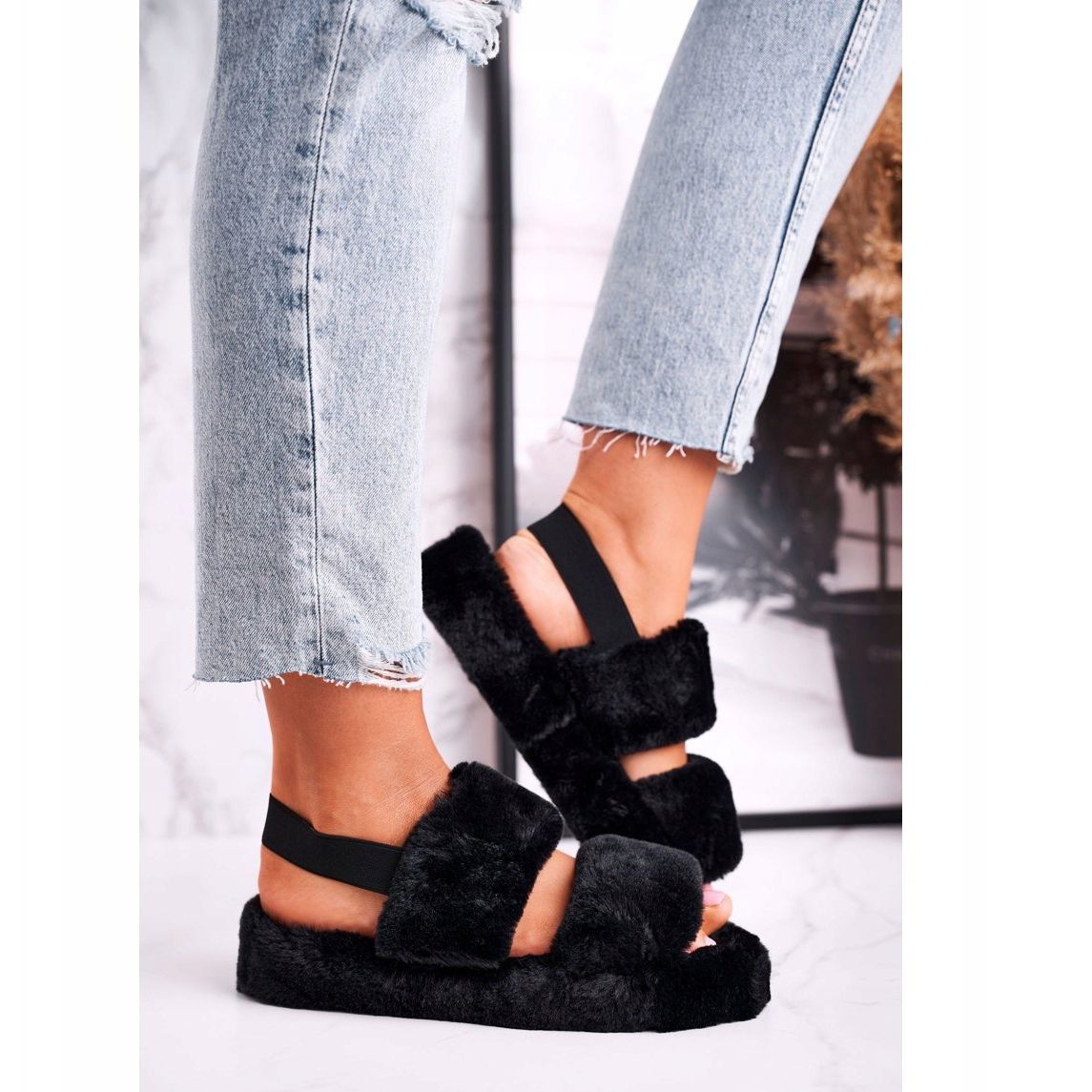 FJ1 FJ1 Chinelos femininos com plataforma de pelo preto algodão doce