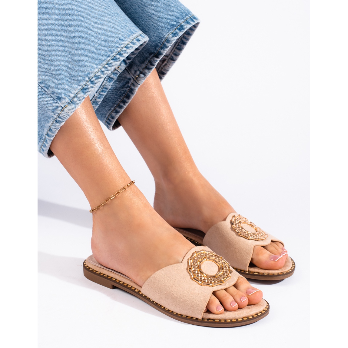 Detalhes: Goodin Chinelos femininos de camurça bege