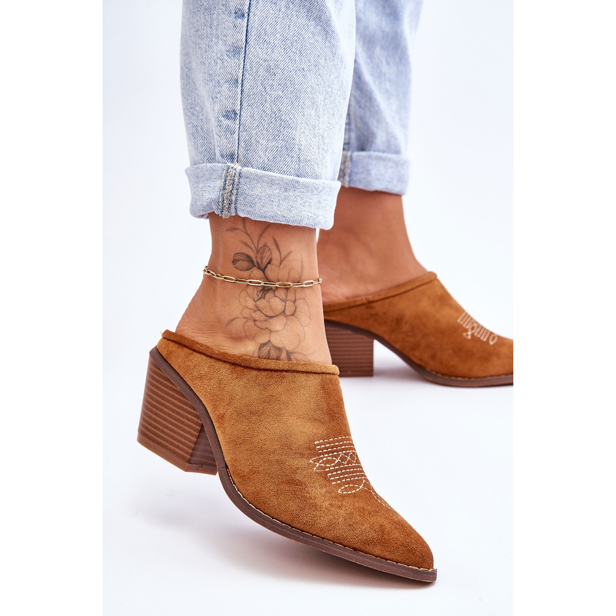 Apresentamos as sandálias cowboy BM em tom camel, que são o complemento perfeito para qualquer estilo casual! Feitos de camurça ecológica de alta qualidade, têm um aspecto extremamente elegante graças ao padrão bordado na frente. A clássica ponta pontiaguda e o enorme salto bloco de 6,5 cm tornam este modelo não só elegante, mas também muito confortável.