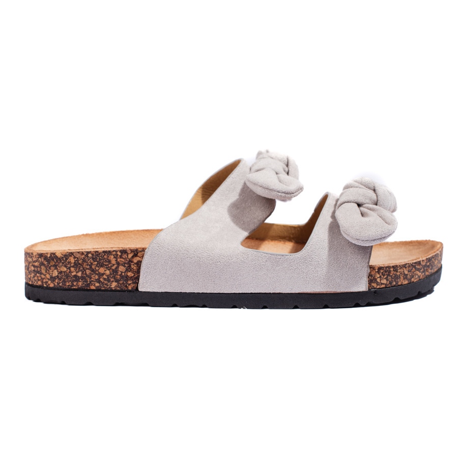 Inna marka Chinelos femininos de camurça cinza com cortiça