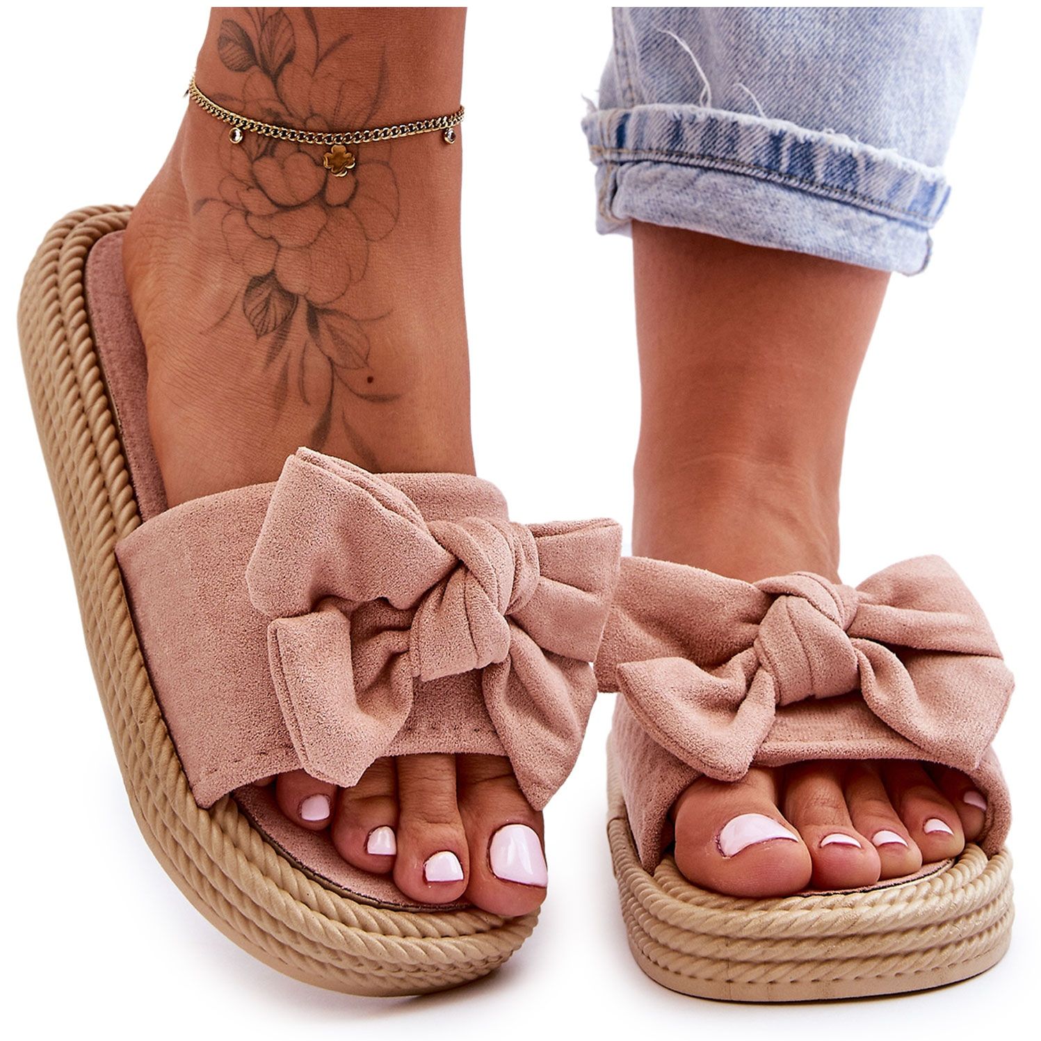 Inna marka Chinelos femininos de camurça com laço rosa Fency bege