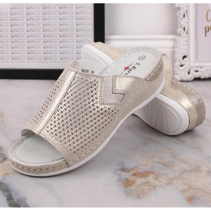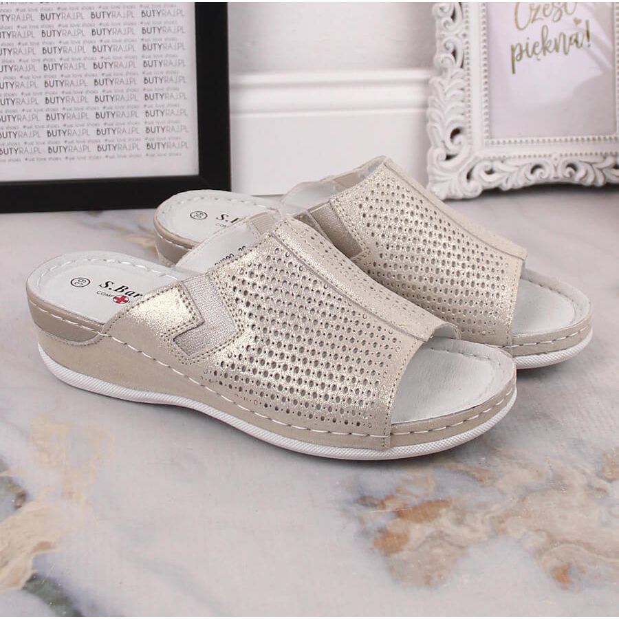S.Barski S.Barski Chinelos femininos de couro com cunha dourada S. Barski dourado