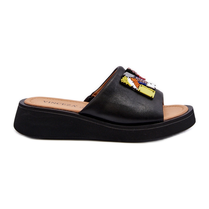Vinceza Vinceza Chinelos femininos de couro com decoração preta Asames preto