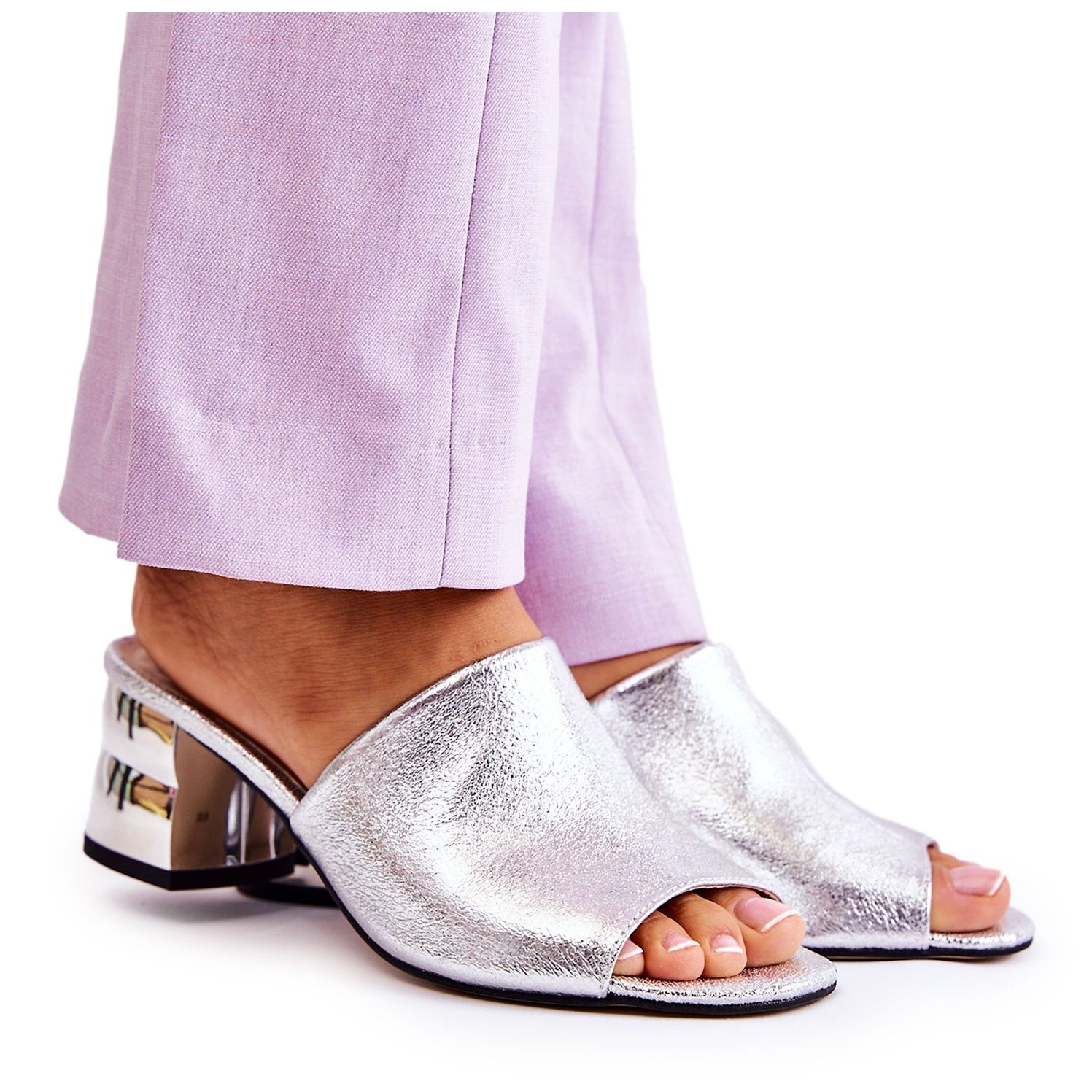 Detalhes: PA2 Chinelos femininos de couro com salto prata Perry