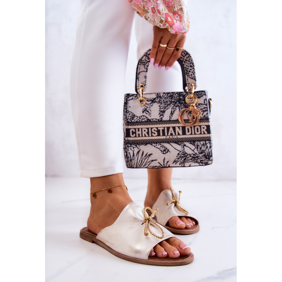 Detalhes: Chinelos femininos de couro Nicole 2659/004 branco e dourado