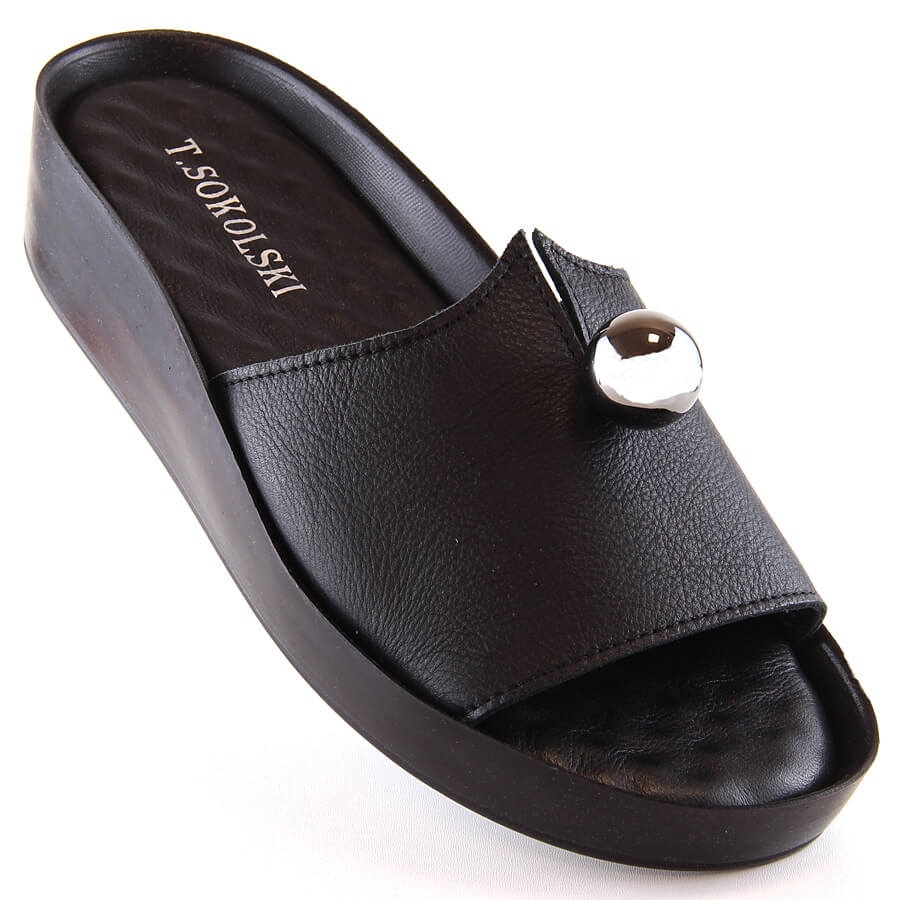 T.Sokolski Chinelos femininos de couro preto T.Sokolski L22-312