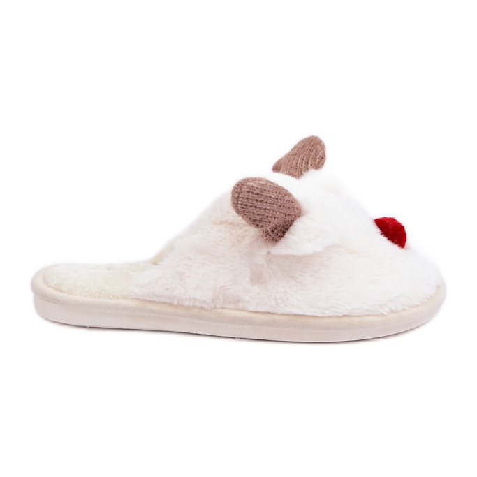 Detalhes: Chinelos femininos de pele com motivo de rena, brancos