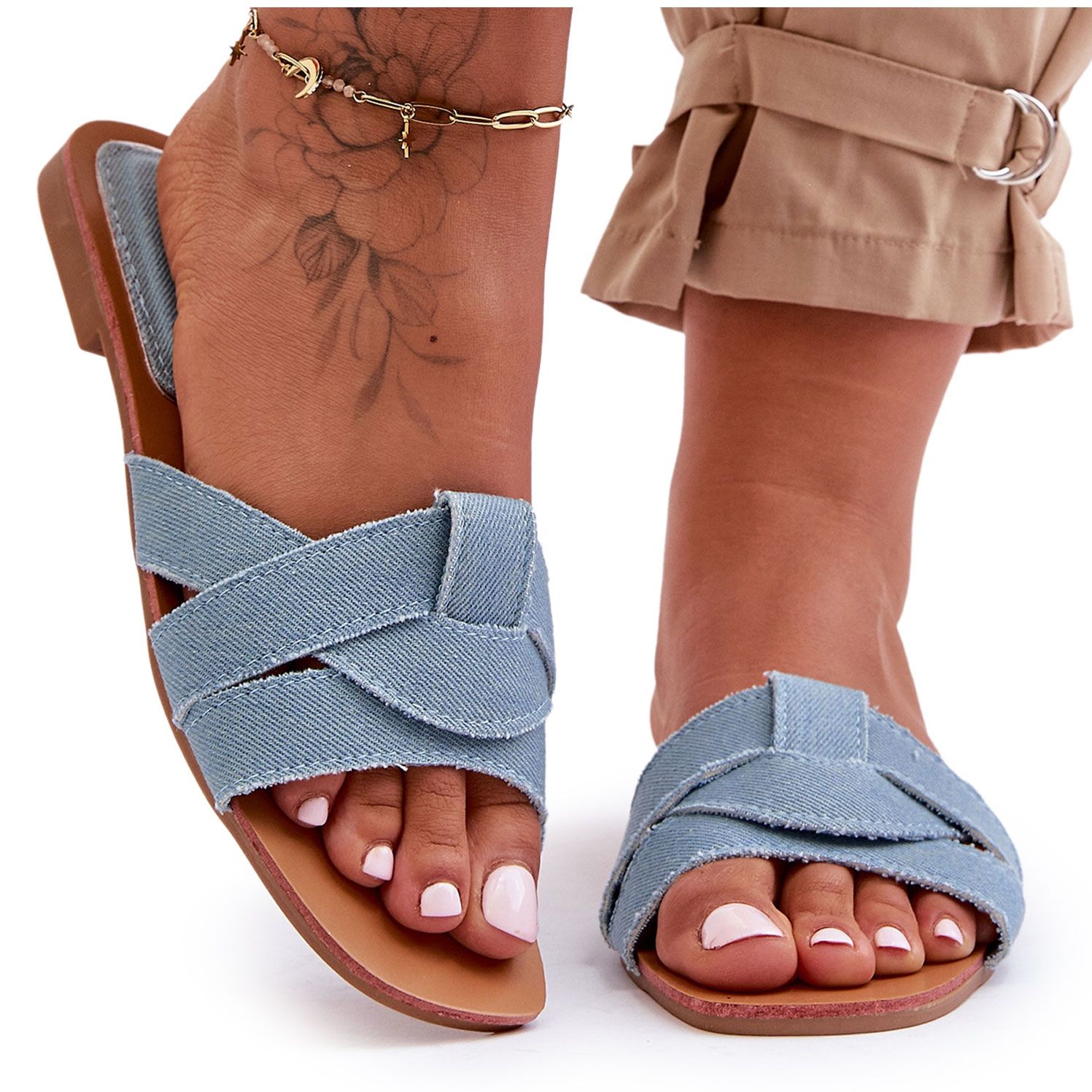 Inna marka Chinelos femininos de tecido azul claro Aversa