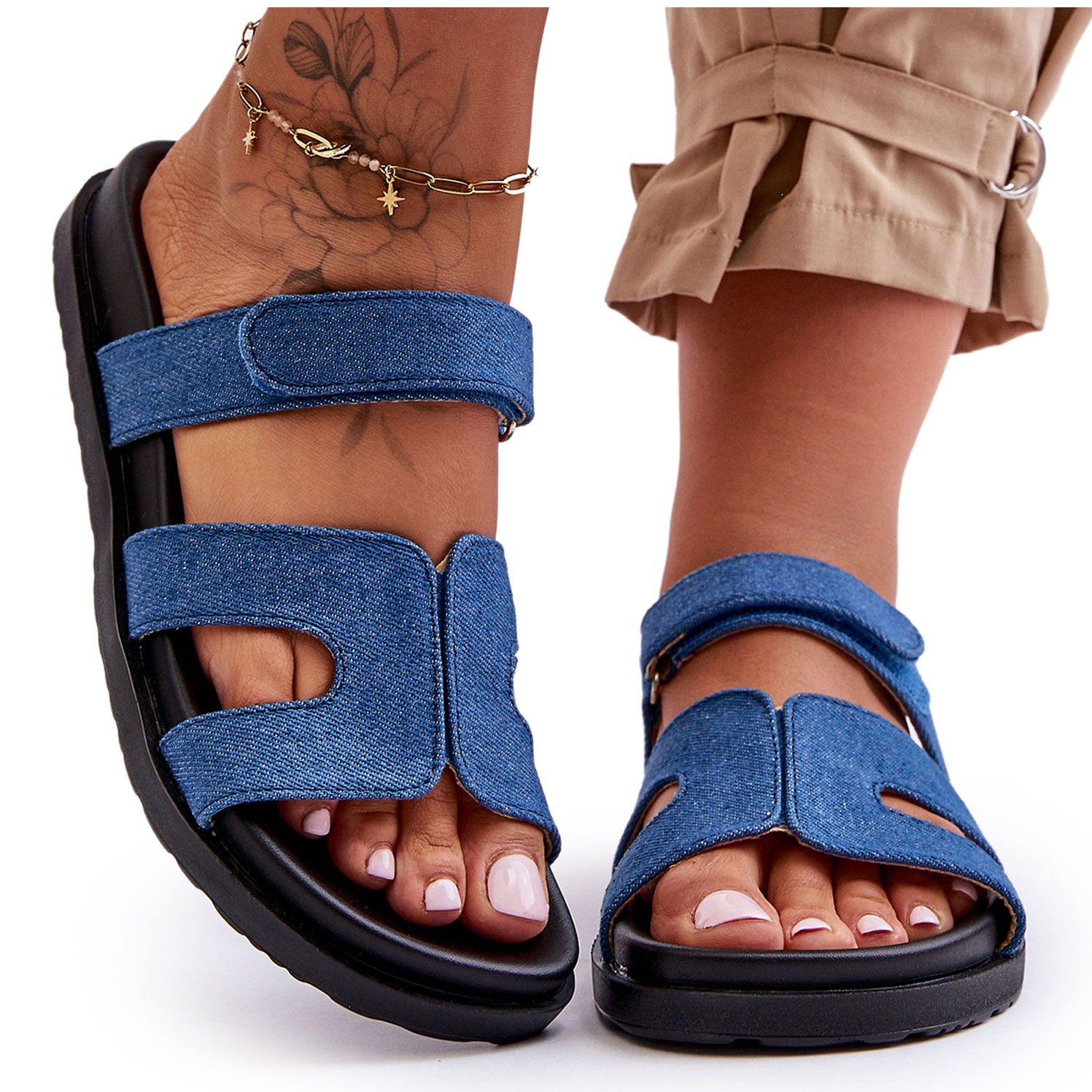 Inna marka Chinelos femininos de velcro azul escuro Jose