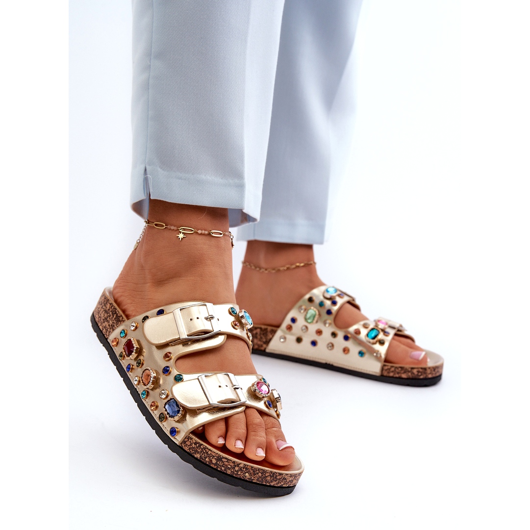S.Barski Chinelos femininos decorados com fivelas S.Barski MY121 dourado