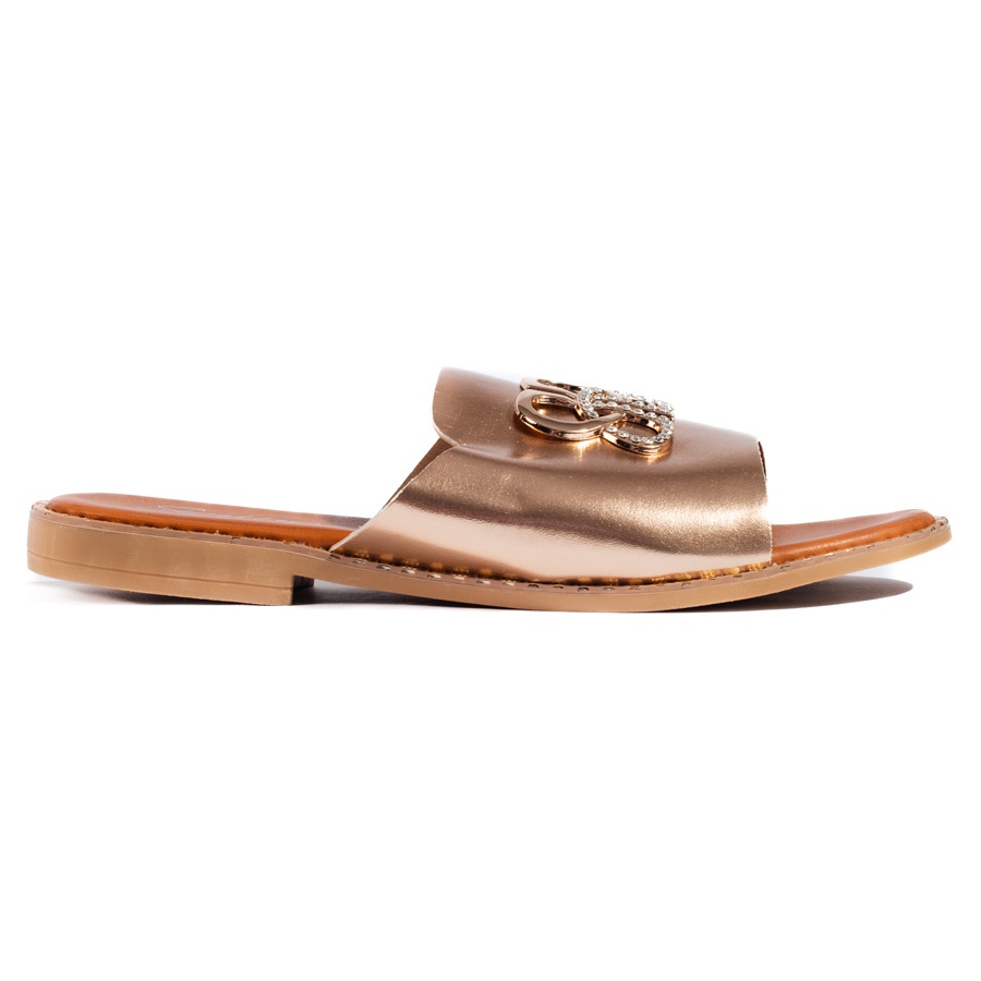 A cor dourada das abas chama a atenção e acrescenta brilho excepcional de qualquer estilo, tornando -os uma adição ideal para vestidos de verão, calças ou fantasias de praia. Decorações adicionais na forma de zircões e strassm enfatizam seu caráter elegante, perfeitamente adequado ao estilo casual e clássico.