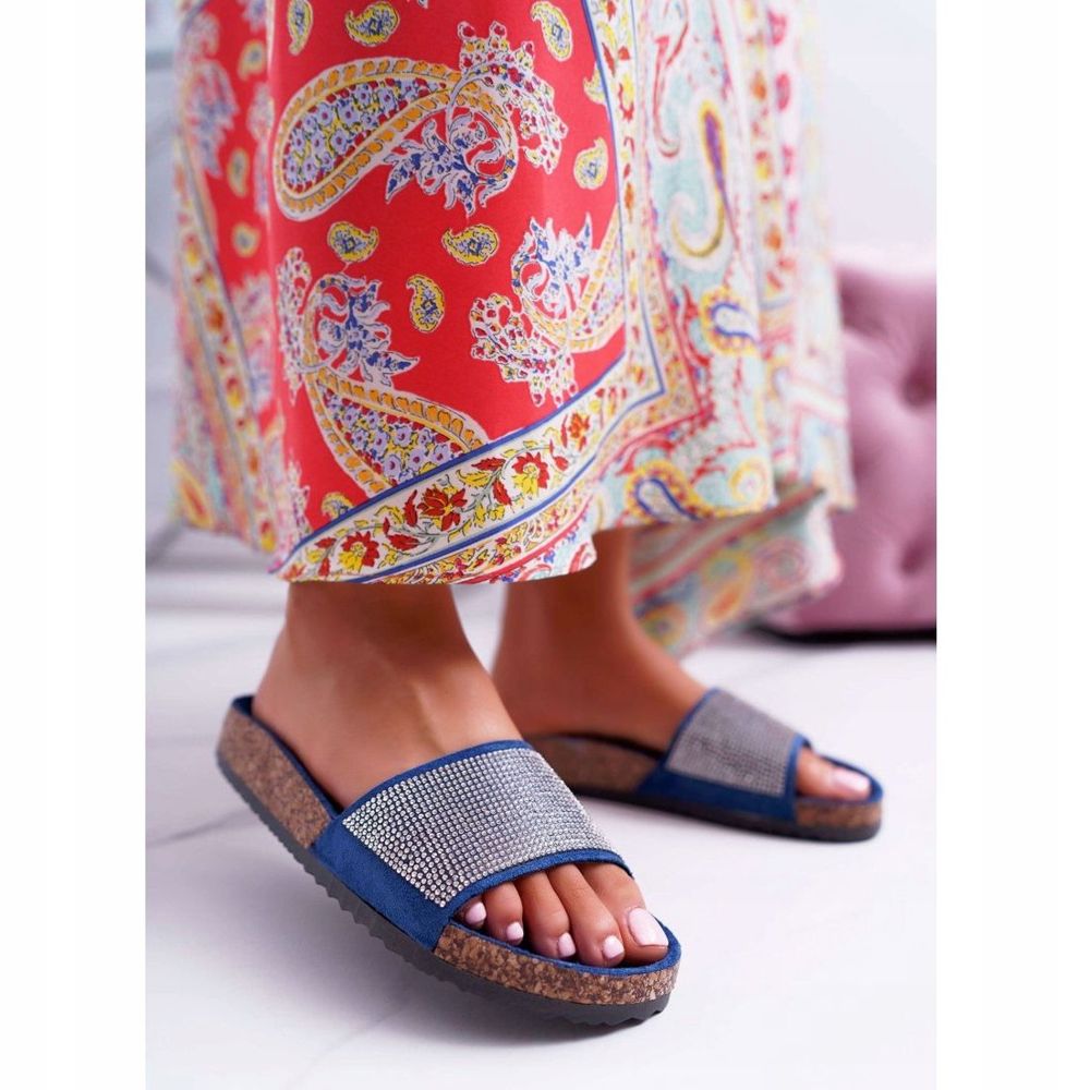 Detalhes: PS1 Chinelos femininos em cortiça com cristais azul marinho azul-marinho