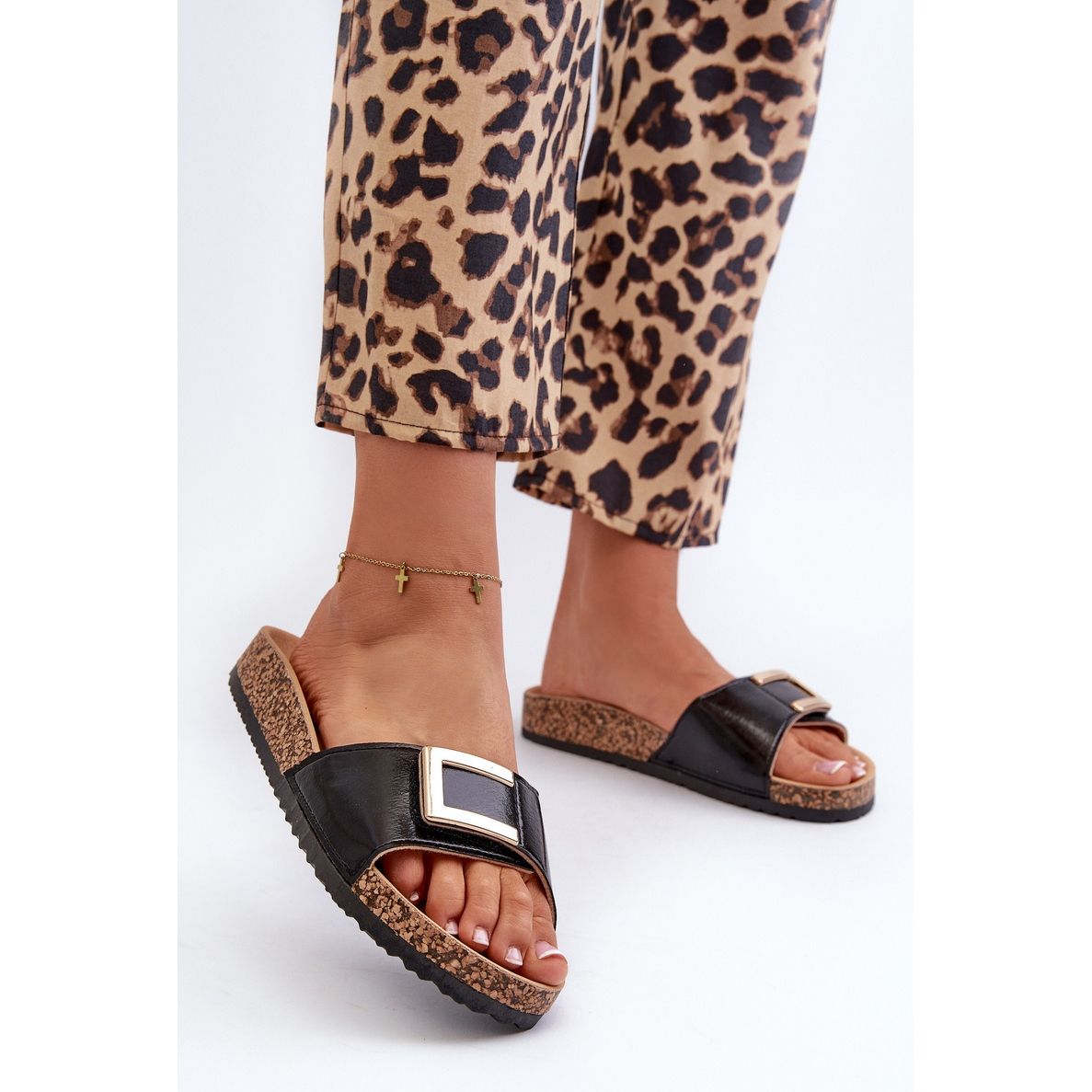 Inna marka Chinelos Femininos em Plataforma de Cortiça com Decoração, Preto Elleriome