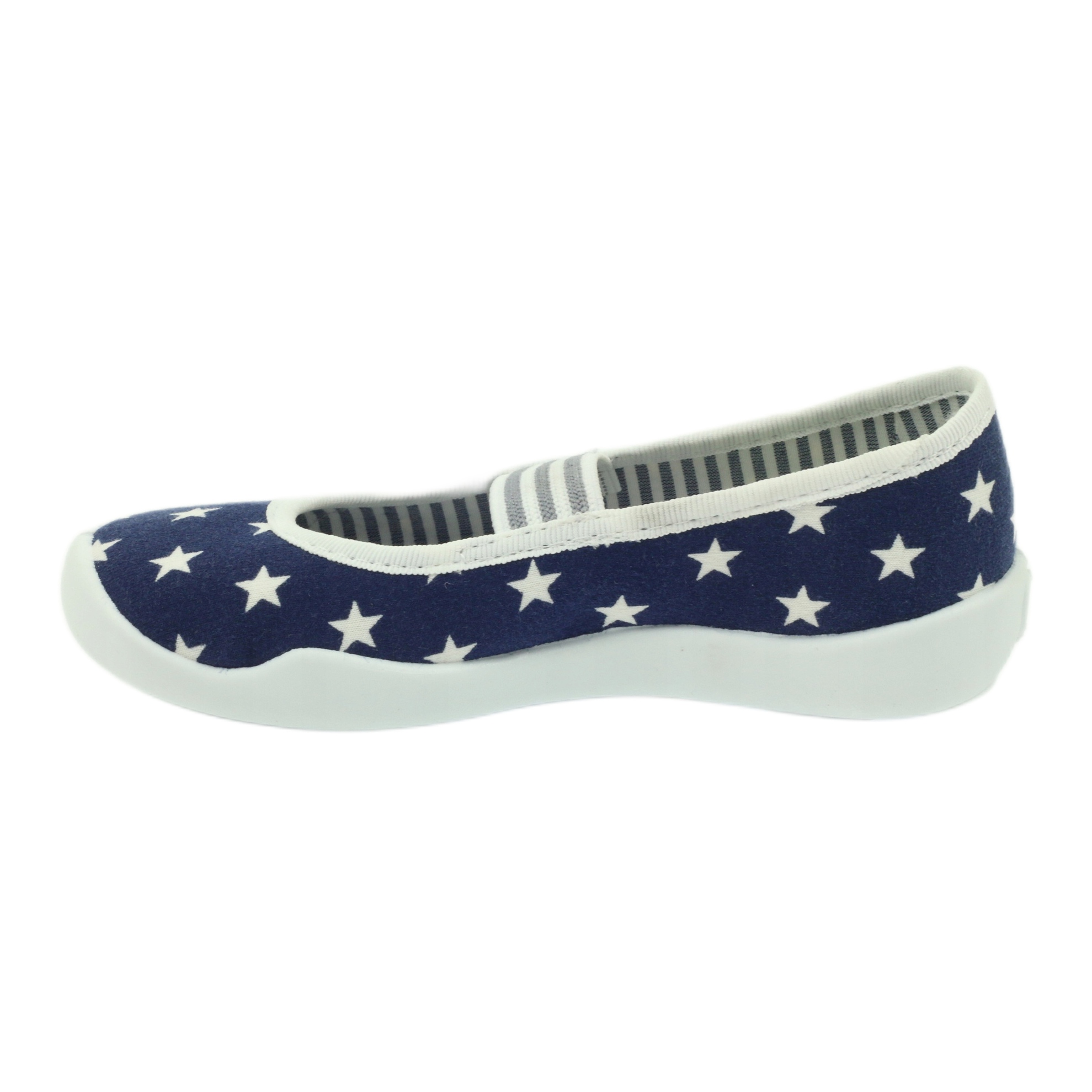 Chinelos femininos Befado, padrão. 193x065 é a escolha perfeita para pequenas fashionistas que valorizam conforto e visual fashion. Estas charmosas bailarinas nas cores azul marinho e branco são perfeitas para o jardim de infância, em casa ou para brincar ao ar livre.