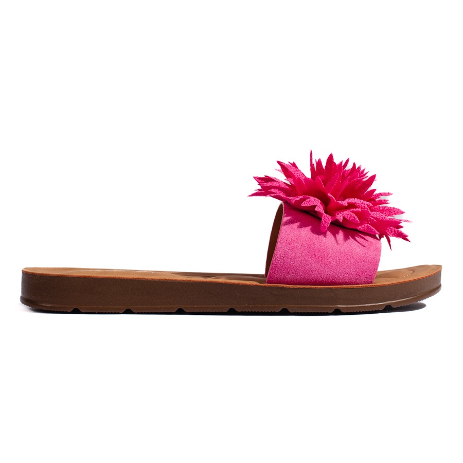 Esses chinelos casuais são fáceis de colocar, graças à inserção e ao fixador aberto. Seu estilo clássico se encaixa perfeitamente no verão, estilizações diárias. A cor da fúcsia com uma flor lhes dá um charme especial, e a sola de plástico marrom garante estabilidade e conforto ao caminhar.