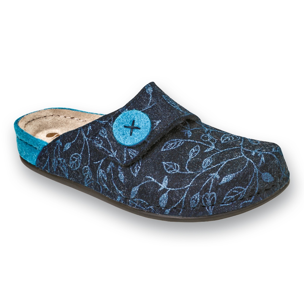 INBLU 155D143 - Flips de mulheres elegantes e confortáveis que funcionarão em casa ao longo da temporada. A combinação de feltro macio com uma inserção de couro natural garante conforto de desgaste e mão -de -obra cuidadosa e um padrão de vegetais dão a eles um personagem elegante. Os chinelos têm um nariz redondo e um fecho inserido prático, graças ao qual a colocação é rápida e sem problemas.