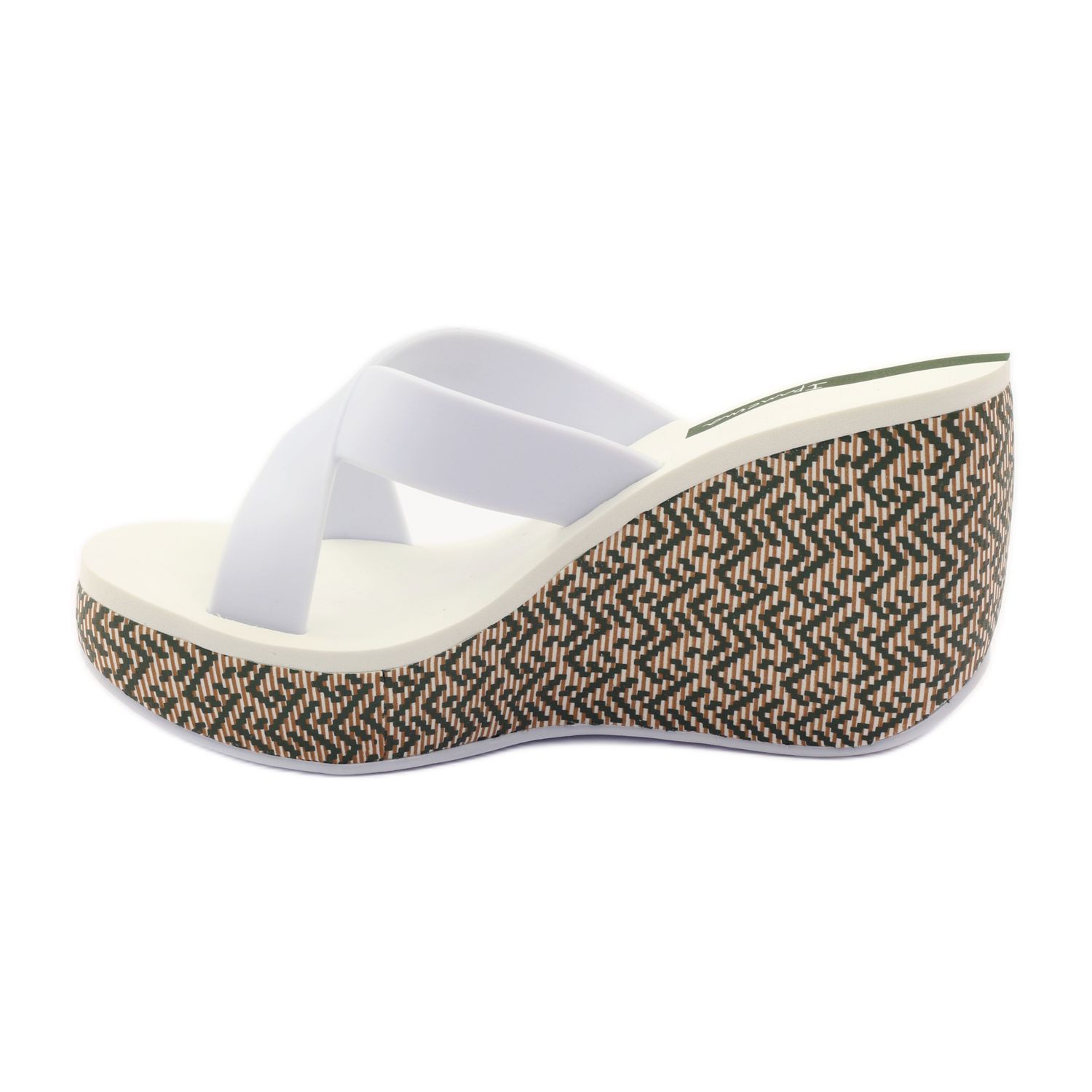 Detalhes: Chinelos femininos Ipanema 82288 de cunha branco marrom verde
