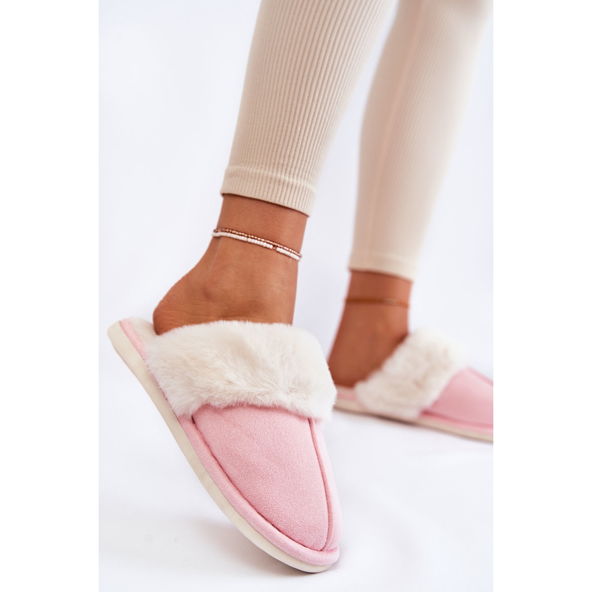 Detalhes: BM Chinelos femininos lisos com pelo rosa Morisea