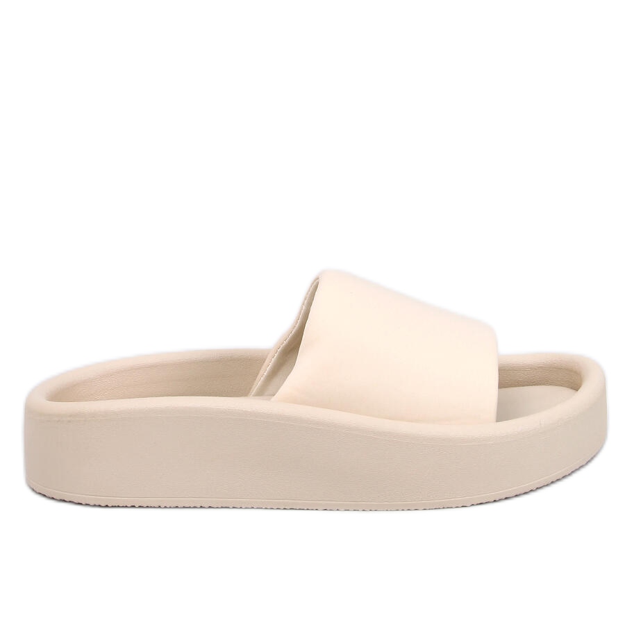 Descubra conforto e estilo todos os dias com fontes macias na cor bege! Esses chinelos são a combinação perfeita do design e conforto originais que tornarão cada passo um prazer. Graças à sola de borracha e à tira larga, seus pés serão perfeitamente mantidos, o que você certamente apreciará durante as atividades diárias.