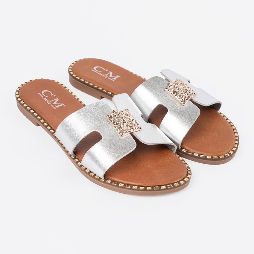 Detalhes: Inna Chinelos femininos metálicos de prata
