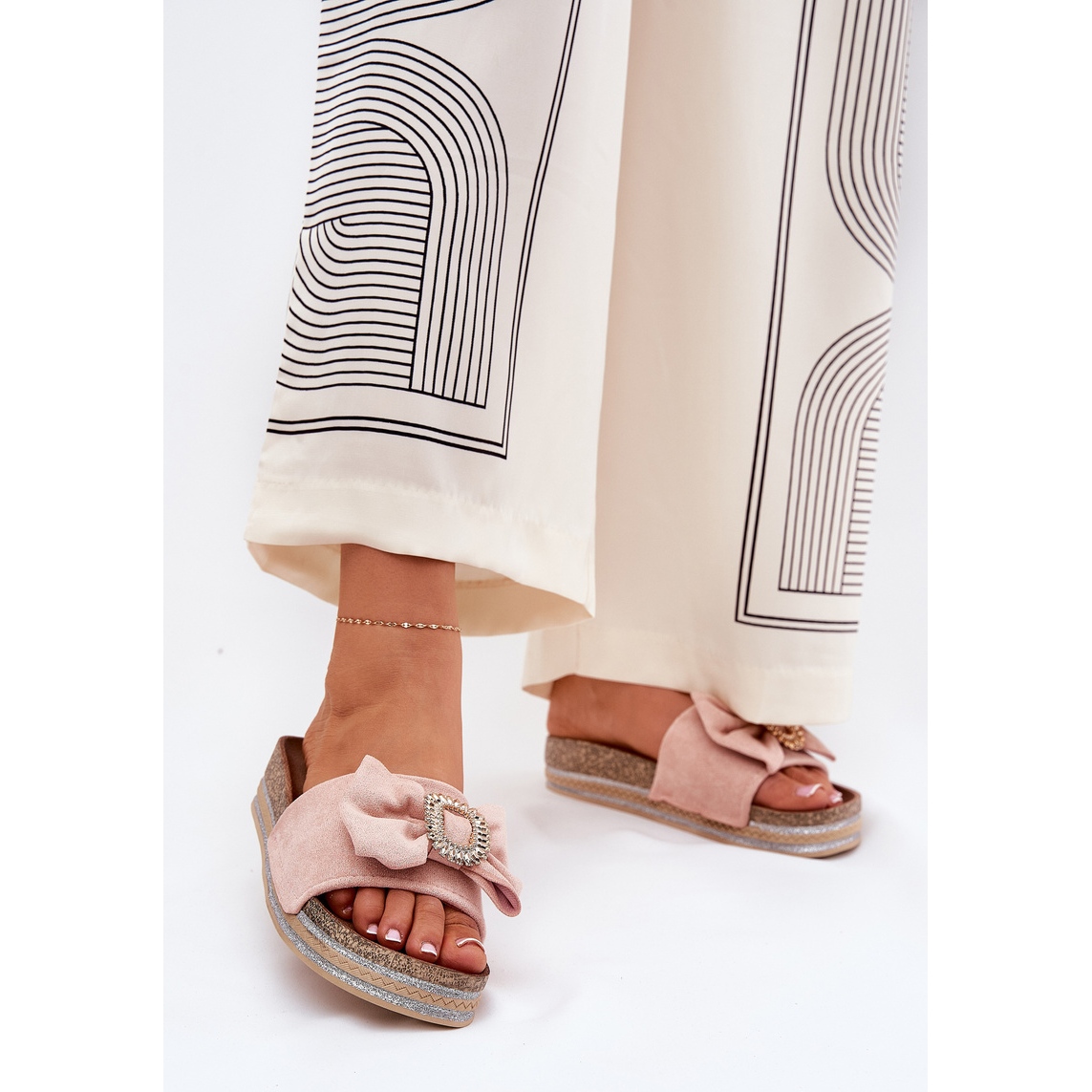 Inna marka Chinelos femininos na plataforma com um arco e um broche decorativo rosa