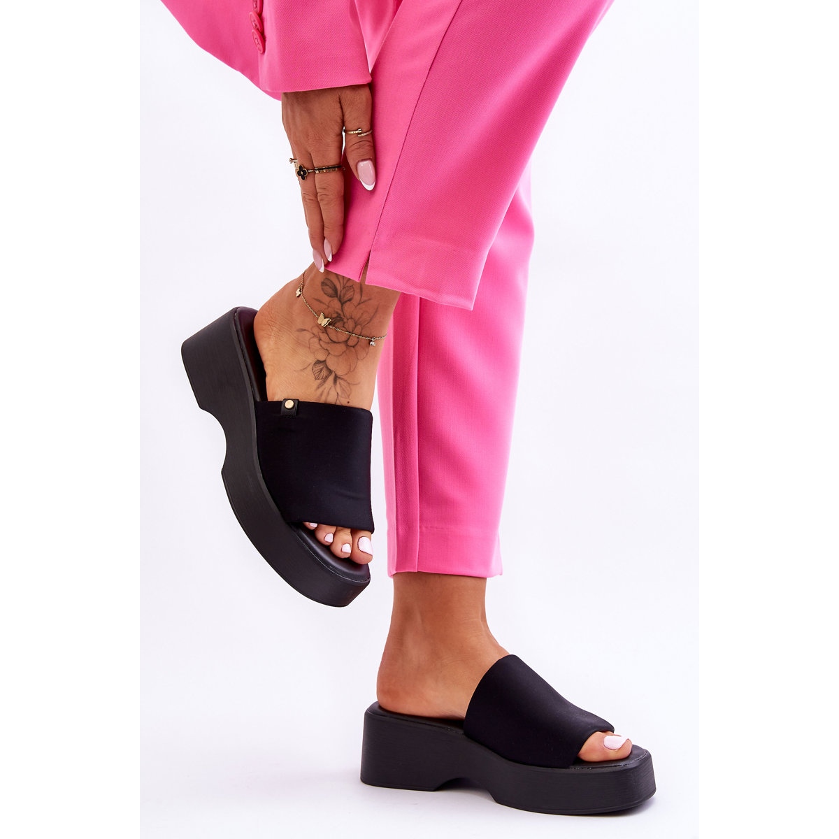 Detalhes: Chinelos femininos plataforma preto Carmela