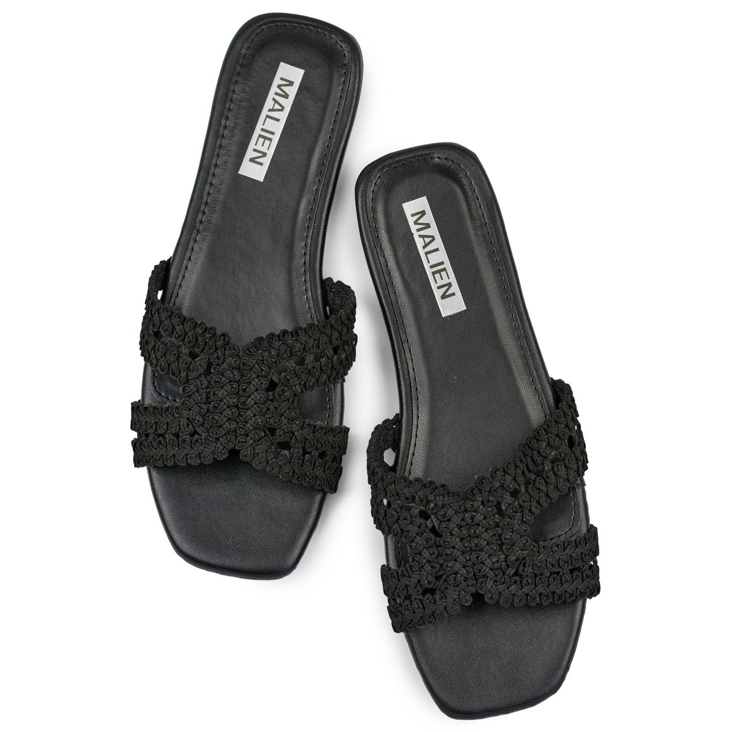 Inna marka Chinelos femininos pretos de renda com sola plana