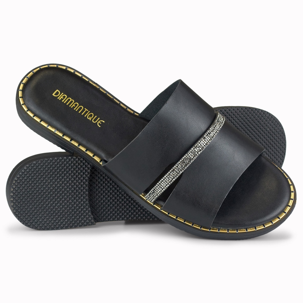 Detalhes: Chinelos femininos pretos elegantes com decoração