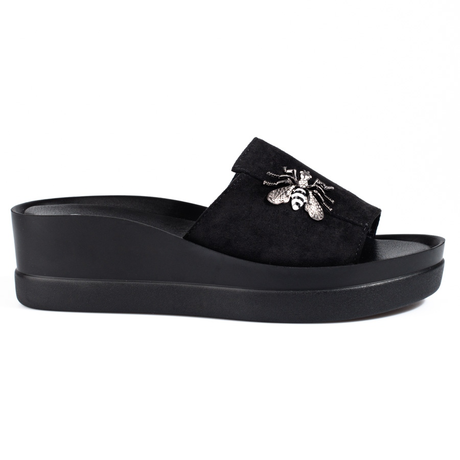 Detalhes: Chinelos femininos pretos em uma confortável cunha Shelovet