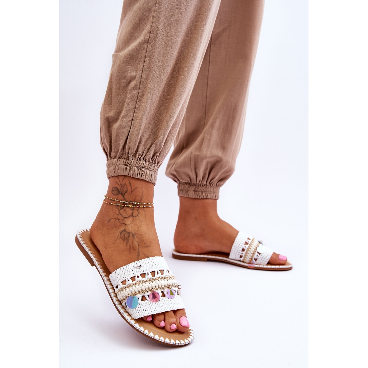 Inna marka Chinelos femininos trançados com enfeites branco Millano