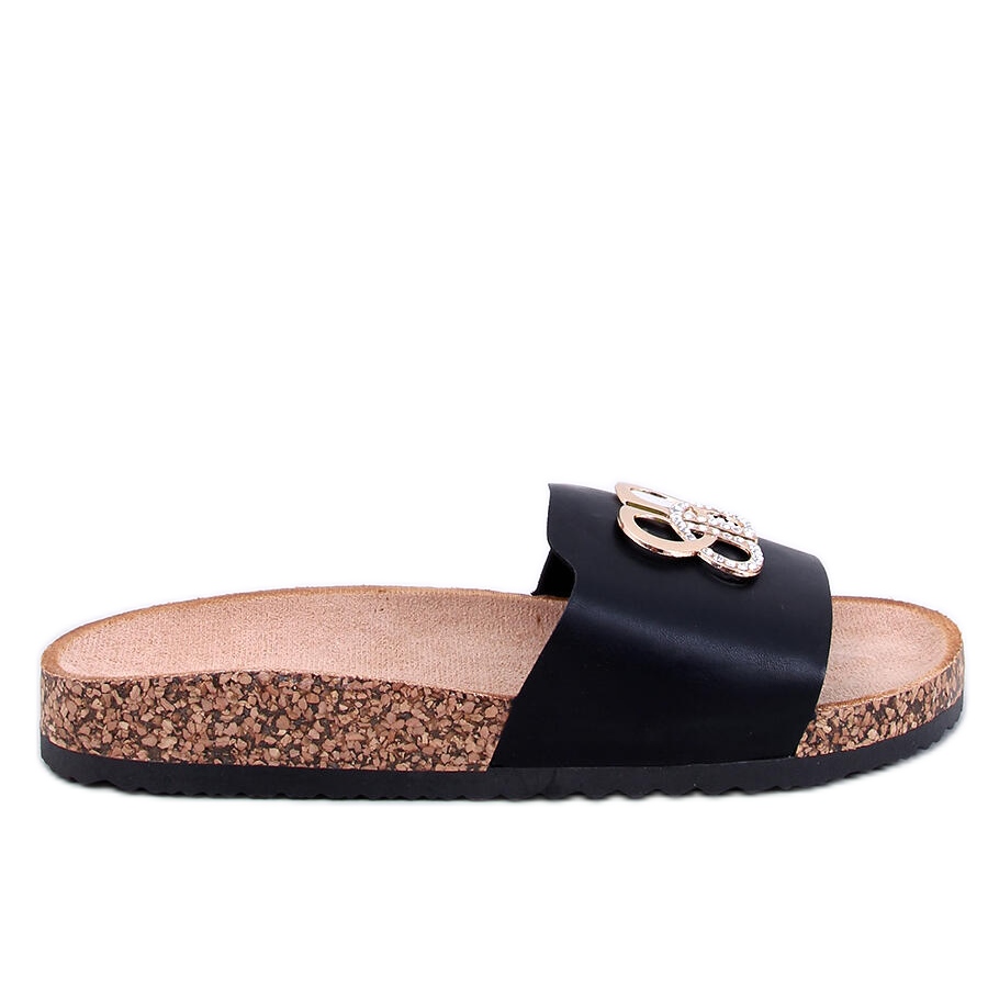 Detalhes: Chinelos Ibanei em cortiça preta com strass preto