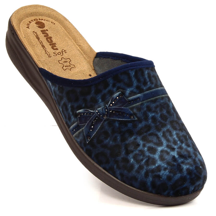 Detalhes: Chinelos Inblu azul marinho para mulher confortáveis com estampa de leopardo azul-marinho