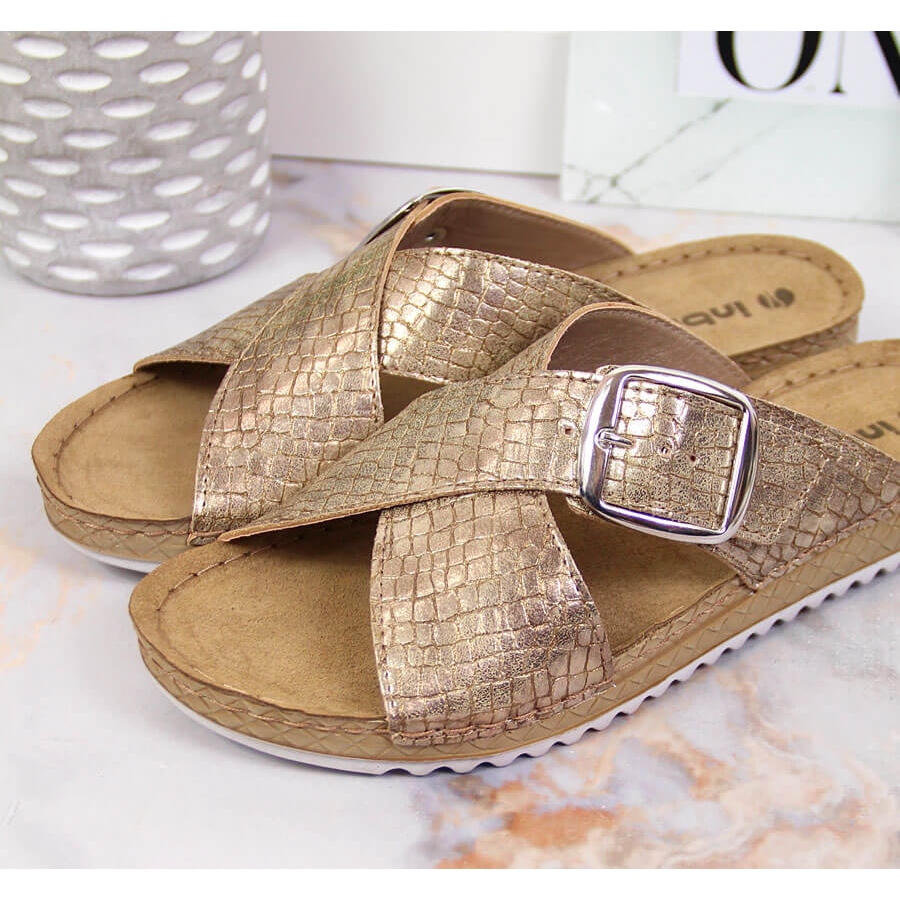 Detalhes: Chinelos Inblu dourados de mulher com fivela