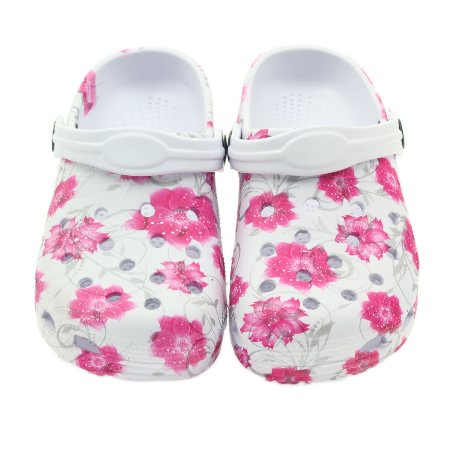 Detalhes: American Club chinelos infantis americanos kroks flores branco cinza rosa