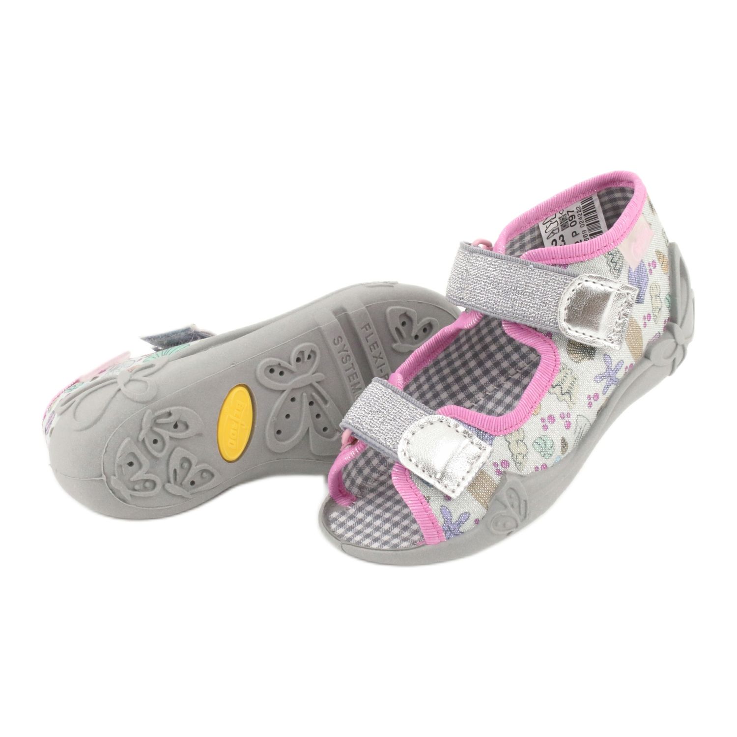 Os chinelos infantis Befado 242P097 são a escolha perfeita para os mais novos que estão a dar os primeiros passos. Estes sapatos multicoloridos em tons de rosa e cinza combinam segurança, conforto e design moderno, o que os torna a solução ideal para os dias de sol.